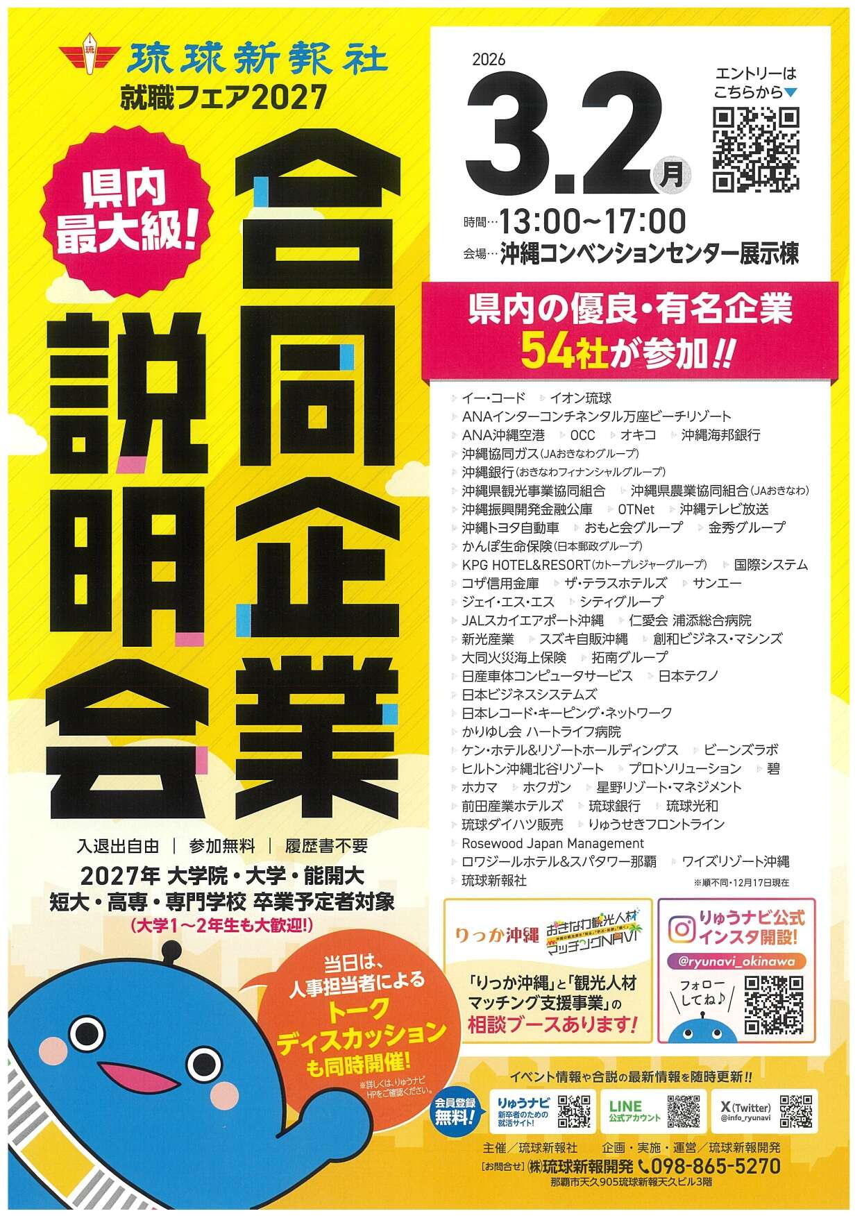 劇場棟外壁等改修工事のお知らせ(2026年2月10日更新) お知らせ 過去のお知らせ 2026/1/15 臨時休館のお知らせ(1月26日) 2025/12/28 年末年始 休館のお知らせ 2025/12/23 テロ対応訓練を実施しました 2025/6/12 施設利用料金改定のお知らせ【修正】 2025/3/20 施設利用料金改定のお知らせ 注目のイベント 第9回全九州高等学校総合文化祭沖縄大会2026年2月15日(日)10:00~17:00劇場ホール沖縄県西原高等学校マーチングバンド第53回全国マーチングバンド全国大会金賞受賞記・・・2026年3月8日(日)開場 17:30 開演 18:00劇場ホールFRIENDSHIP LIVE OKINAWA 2026(出演:南こうせつ / ・・・2026年4月26日(日)開場 15:30 開演 16:30劇場ホール イベント情報 イベント一覧 ALL コンサート・音楽・演劇 イベント・展示・商談会 MICE・会議・セミナー・学会 経営効率化&DX展示会 in沖縄2026年2月14日(土)11:00~16:00会議場A2,3マイナビ転職フェア 沖縄2026年2月14日(土)09:00~22:00展示場2026 新春の集い2026年2月15日(日)開場 12:00 開演 13:00会議場A1,2,3第9回全九州高等学校総合文化祭沖縄大会2026年2月15日(日)10:00~17:00劇場ホール看護roo!就活 合同説明会2026年2月15日(日)開場 11:30 開演 12:00展示場システムグラフィ主催: 小型DTF&昇華プリンターによるデモンストレーション2026年2月17日(火)09:00~22:00会議場B5 第9回全九州高等学校総合文化祭沖縄大会2026年2月15日(日)10:00~17:00劇場ホールミュージックフェスティバル2026年2月28日(土)開場 13:00 開演 13:30劇場ホール沖縄県西原高等学校マーチングバンド第53回全国マーチングバンド全国大会金賞受賞記・・・2026年3月8日(日)開場 17:30 開演 18:00劇場ホールFRIENDSHIP LIVE OKINAWA 2026(出演:南こうせつ / ・・・2026年4月26日(日)開場 15:30 開演 16:30劇場ホール 経営効率化&DX展示会 in沖縄2026年2月14日(土)11:00~16:00会議場A2,32026 新春の集い2026年2月15日(日)開場 12:00 開演 13:00会議場A1,2,3看護roo!就活 合同説明会2026年2月15日(日)開場 11:30 開演 12:00展示場琉球新報就職フェア2027 合同企業説明会2026年3月2日(月)13:00~17:00展示場 挑戦.情熱を未来へ繋ぐ講演会2026年2月18日(水)開場 12:30 開演 13:30会議場B2エホバの証人の巡回大会(沖縄第3巡回区)2026年2月21日(土)09:50~16:10劇場ホールエホバの証人の巡回大会(沖縄第1巡回区)2026年2月22日(日)09:50~16:10劇場ホール第38回 建設業経理士検定試験(1・2級) 第44回 建設業経理事務士・・・2026年3月8日(日)09:30~16:40展示場,会議棟B